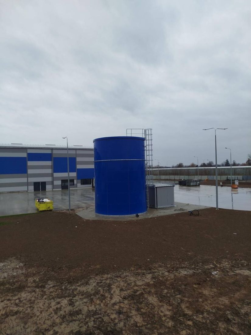 Realizacja zbiornika przeciwpożarowego o parametrach V=700m3, D=9,32m, H=11,39m zgodnie z normą PN-EN RAL7016