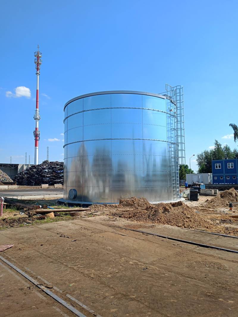 Realizacja zbiornika przewipożarowego o parametrach V=800m3, D=10,097m, H=11,39m